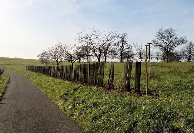 Les milieux agricoles des Vosges du Nord sont encore relativement diversifiés et extensifs. On y dénombre néanmoins quelques grandes zones de cultures de plus de 100ha, qui ne comportent que très peu d’éléments arborés. Dans certains cas, les cours d’eau traversant ces cultures sont à nu. Ces grandes zones de cultures sont défavorables à la majorité des espèces et sont infranchissables pour certaines d’entre elles. Le rétablissement de corridors par la plantation d’allées d’arbres de haies ou de ripisylves au sein de ces zones améliorera grandement leur perméabilité aux espèces.Par ailleurs des milieux ouverts remarquables tels que des prairies maigres ou humides tendent à disparaître. La restauration de ces milieux est essentielle pour le maintien et la dispersion des espèces de milieux ouverts. A ce jour 5148ml de haies ont été plantés sur le territoire du PNRVN. Côté allemand, le projet LIFE Biocorridors a restauré 6,5ha de prairies maigres (objectif initial 5ha) et à peu près autant de prairies humides (objectif initial 20ha). Cette action favorise la survie et la libre circulation des espèces liées aux milieux ouverts et menacées par l'uniformisation des paysages et la disparition d'habitats ouverts remarquables de la Réserve de Biosphère Transfrontalière des Vosges du Nord-Pfälzerwald. Tous les sites sélectionnés sont situés sur des grandes zones de culture au long des corridors écologiques des milieux ouverts. Les arbres utilisés sont de provenance locale et adaptés aux sols. Les plants sont placés le long de chemins ruraux, en bordure de parcelle agricole à une distance d'un arbre tous les 90cm environ. Des conventions d'engagement sont signées avec les Communes bénéficiaires pour acter leur engagement à maintenir les plantations en l'état pendant au moins les 20 prochaines années.
