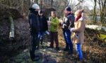 Ci-dessous: Marie L’Hospitalier en pleine action sur le site de Weiler, avec les administrations allemande et française en charge de la police de l’eau.